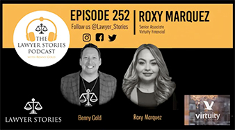 The Lawyer Stories Podcast Episode 252 features Roxanna “Roxy” Marquez, Business Partner at Virtuity Financial Partners, based in Los Angeles, California – educating and empowering clients nationwide.